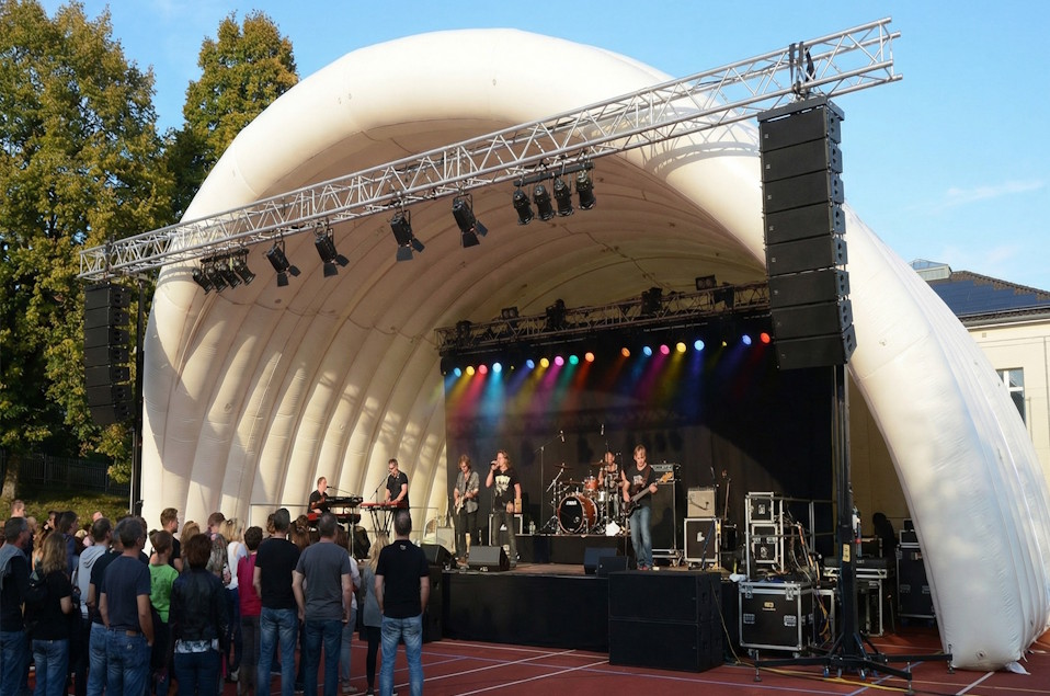 Mit unseren aufblasbaren Überdachungen für Konzerte (sogenannte Stagezelte) können Sie Ihren Musikern, Künstlern oder Rednern eine wetterfeste Bühne bieten. Folgende Grössen haben wir im Angebot: